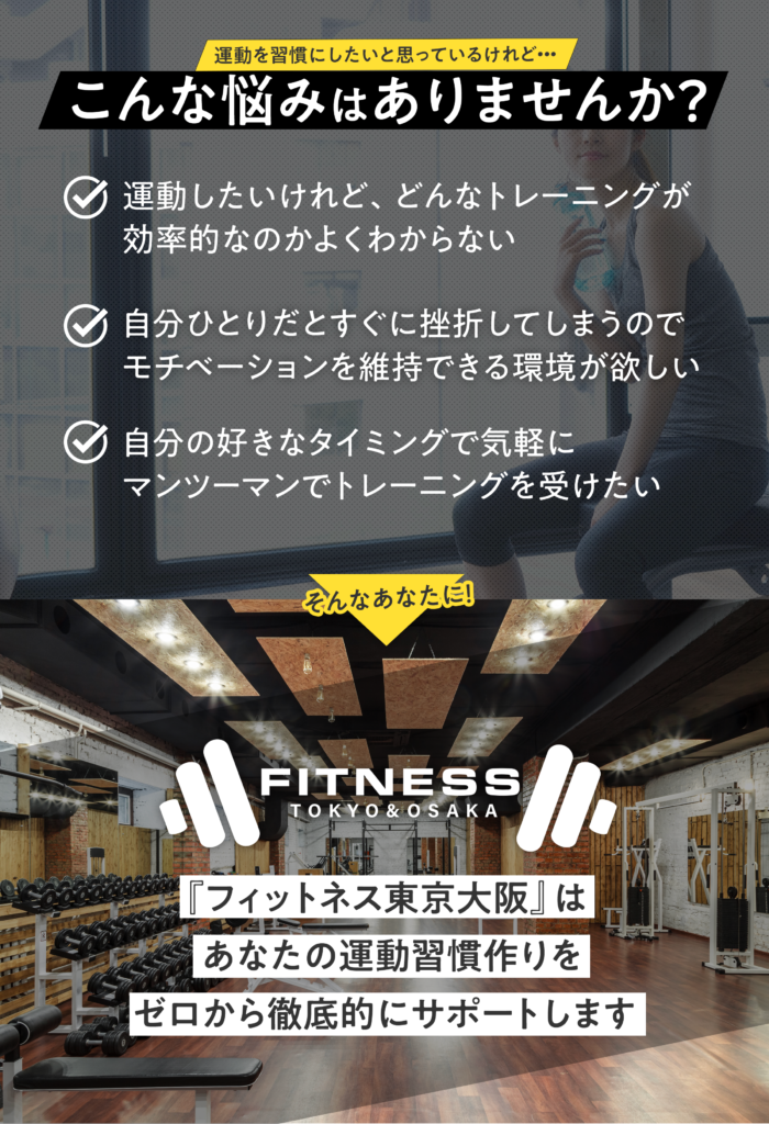 運動する目的は人それぞれです。私たちはまず皆様ひとりひとりからじっくりと話を聞くところからスタートします。 目標を達成するためにはそれぞれに合ったトレーニングメニューが必要です。その目標に向かって長期的に継続できるプライベート空間を用意しています。 いくら身体を動かすことが大事といっても、無駄な動きや負荷のかかる動きばかりでは、効果が出ないばかりか怪我にもつながってしまいます。 本ジムでは専門のトレーナーがあなたに本当の意味で効果を実感して頂くために、時には優しく時には厳しく「程よいトレーニングメニュー」を提案させていただきます。 運動を始めた直後は、 「これで合っているのかな?」本当に効果が出るのかな?」そんな不安を感じることも少なくありません。 私たちは、効果を実感できるその日まで、いつでも相談できる環境を大切にしています。フォームの確認やメニューの見直し、体調や生活リズムの変化にも柔軟に対応し、あなたのペースに寄り添いながらサポートを続けます。 氏名 メールアドレス 題名 メッセージ本文 (任意)